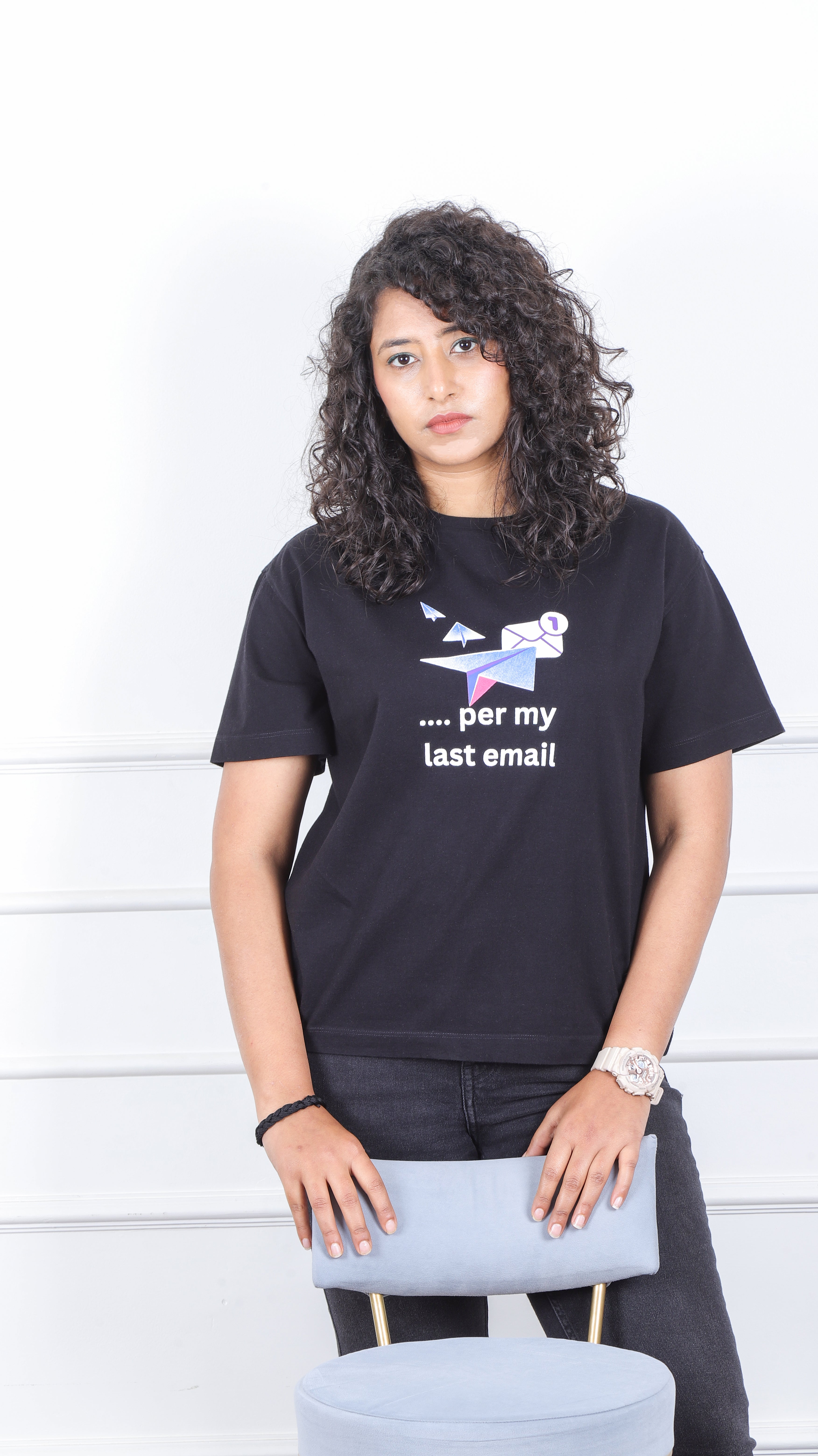 Tired of repeating yourself? Our "Per My Last Email" t-shirt is the perfect way to subtly (or not so subtly) convey your message. Whether you're in the office, working from home, or just need a good laugh, this tee is your new go-to.